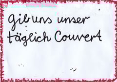 Seit Anfang 2007 habe ich konsequent jedes Couvert mit neutraler Rückseite, welches sich in meinem Briefkasten befand, bearbeitet. Eine Sammlung von alltäglichen Notizen: «Gib uns unser täglich Couvert...» ist der Arbeitstitel - oder einfach «Schüttelbilder», aus dem Ärmel geschüttelte Bilder, Gedanken, Kommentare, Texte - von Allem was gerade so vors Auge oder in die Sinne kommt oder was der Pinsel alles kann. Van Gogh musste Leintücher klauen, damit er seine Bilder erschaffen konnte. Heute ersaufen wir in einer Papierflut, in den Werbe- und Rechnungsüberschwemmungen, Leintücher erhältst du im Brockenhaus billig und zuhauf. Da kann ich gerade sogut auf die blanken Rückseiten dieser Couverts malen, schreiben, zeichnen, notieren, dichten, reden. Hauptsache Couvert.