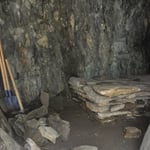«Für die Pilgerin» Die historische Twingistrasse in der wilden Twingischlucht liegt auf dem Weg zum Wallfahrtsort Heiligkreuz im Lengtal. Die kleine Höhle auf diesem Weg wurde während dem 2. Weltkrieg von Soldaten in den Fels gehauen und diente wohl als Unterstand. In dieser Kaverne im Fels wurde nun eine karge Nachtstätte für eine unbekannte Pilgerin errichtet. Ein einfaches Lager zum Ausruhen, ein Ort des Gebets, eine Klause der Kontemplation. Die Wanderer sind dazu eingeladen, mit dem Drehen der Gebetsmühle, ihre Herzenswünsche und Gebete für die Welt dieser Höhle anzuvertrauen, auf bereitgestelltes Kardiopapier zu schreiben und in den Ritzen und Spalten der Felswände zu hinterlegen.